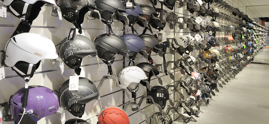 WSB kennt alle Warenauslagesysteme in Sportgeschäften: Auslage von Hockeyartikel, Schuhen, Fußballartikel, Schlittschuhlaufartikeln, Skiern, Fahrrädern, Sonnenbrillen, Boards und so weiter. Alles wurde bereits entwickelt.